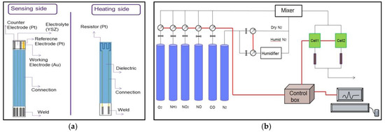 - Romanytsia, I.; Viricelle, J.P.; Vernoux, P.H.; Pijolat, C. Application of advanced morphology AuX (X = YSZ, ZrO2) composites as sensing electrode for solid state mixed-potential exhaust NOx sensor. Sens. Actuators B Chem. 2015, 207, 391–397. [Google Scholar] [CrossRef]
