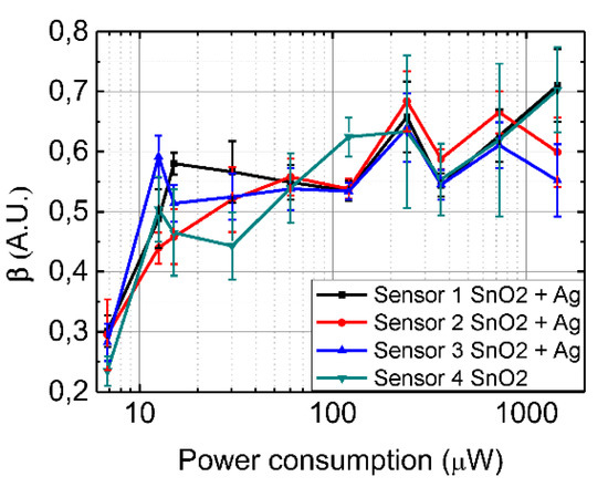- Elmi, I.; Zampolli, S.; Cozzani, E.; Mancarella, F.; Cardinali, G.C. Development of ultra-low-power consumption MOX sensors with ppb-level VOC detection capabilities for emerging applications. Sens. Actuators B 2008, 135, 342–351. [Google Scholar] [CrossRef]