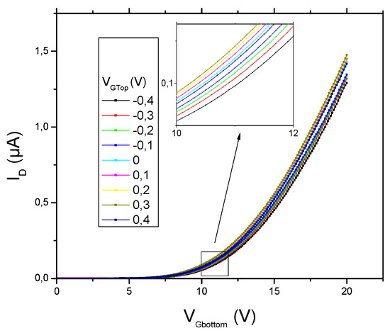 Influence of the top gate voltage on the transfer characteristics.