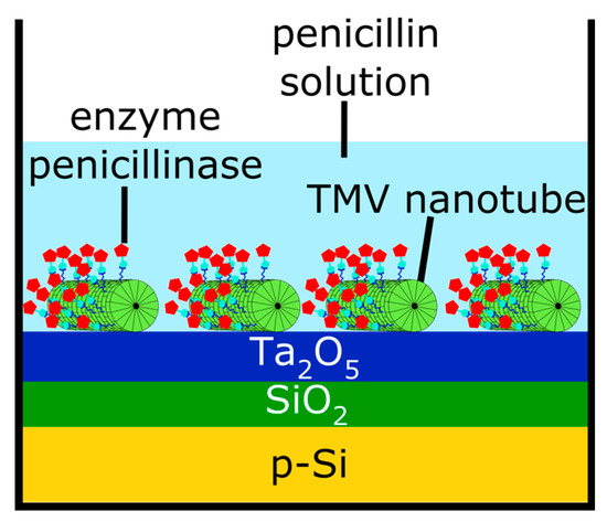 - Bäcker, M.; Koch, C.; Eiben, S.; Geiger, F.; Eber, F.; Gliemann, H.; Poghossian, A.; Wege, C.; Schöning, M.J. Tobacco mosaic virus as enzyme nanocarrier for electrochemical biosensors. Sens. Actuators B 2016, 238, 716–722. [Google Scholar] [CrossRef]