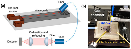 - Ranacher, C.; Consani, C.; Hedenig, U.; Grille, T.; Lavchiev, V.; Jakoby, B. A Photonic Silicon Waveguide Gas Sensor Using Evanescent-Wave Absorption. In Proceedings of the 2016 IEEE SENSORS, Orlando, FL, USA, 30 October 2016–3 November 2016. [Google Scholar] [CrossRef]