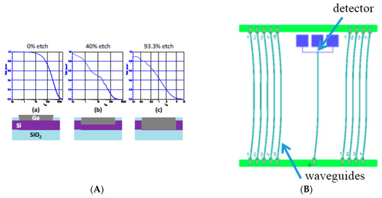 - Vivien, L.; Osmond, J.; Fedeli, J.M.; Marris-Morini, D.; Crozat, P.; Damlencourt, J.F.; Laval, S. 42 GHz pin Germanium photodetector integrated in a silicon-on-insulator waveguide. Opt. Express 2009, 17, 6252–6257. [Google Scholar] [CrossRef] [PubMed]