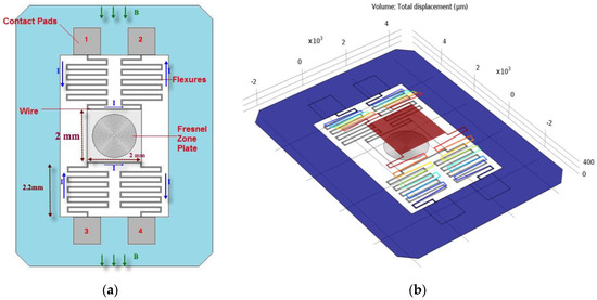 Figure 2a shows the schematic of the structure. The design of the structure involves both mechanical and optical design. The mechanical design includes determining the actuator’s physical parameters while in the optical design, factors affecting the focusing ability of the FZP is discussed.
