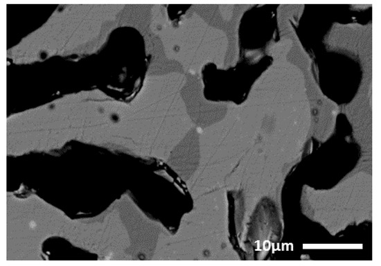 R12Fe3O2 phase observed by SEM (dark grey areas) on sintered Terfenol-D with conventional annealing at 1075 °C.