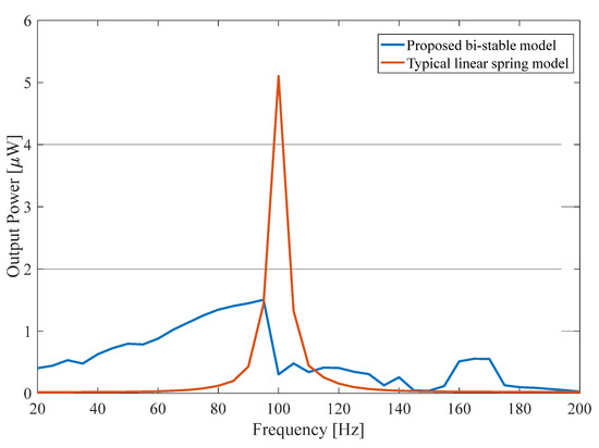 3.1.2. Comparison between Linear and Bi-Stable Harvesters Electrical Power Outputs