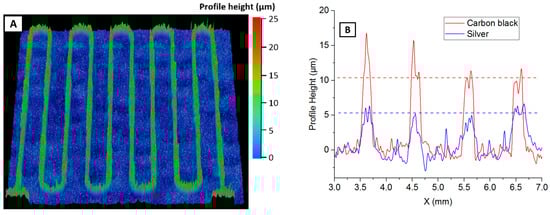 Figure 3 show that final thicknesses of the sensitive layers are ~5 μm and ~10 μm for silver and carbon black respectively (a 120/34 threads/inch screen printing mesh was used).