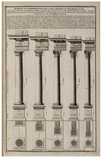 In table n.1 in Chapter 3 Volume I in the Recueil (Figure 3), the five architectural orders are reported and introduced with an author’s description which explains the origin and how they belong to be classic languages []: