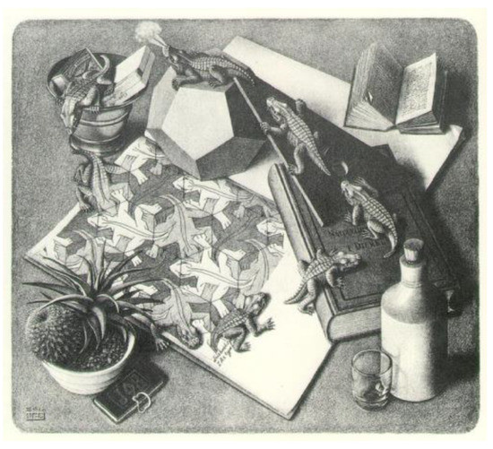 Escher liked Magritte too, for whom he had a real passion, and the mathematician Bruno Ernst, a friend and biographer, used Magritte’s work in a proper and effective manner to frame some of the themes proposed by Escher [14].