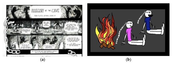 For this reason, the Plato’s ‘Myth of the cave’ also turns out to be a prime subject of didactic analysis [43,44,45,46], useful to deepen and expose the processes of teaching ‘mediation’ [22,23,24,25,26,27], especially in its representational and iconic aspects [28]. It should be noted that, over the years, often, the ‘Myth of the cave’ has been subject of specific teaching experiences [29,30,31], most of the time along an interdisciplinary orientation or as useful argument to enhance student social skill [3].