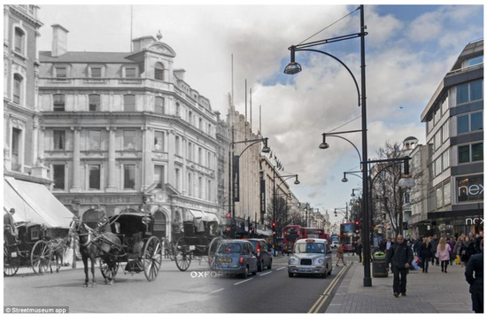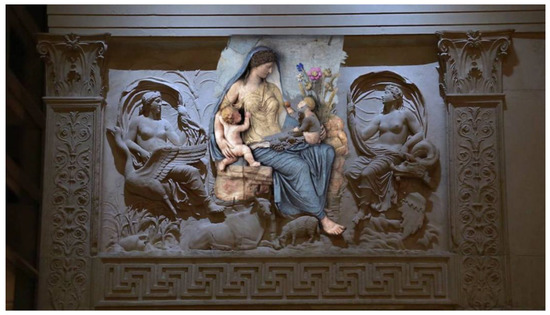 Augmented reality also offers the possibility of seeing monuments as they were in the past. A meaningful example is Ara Pacis in Rome, which, through special visors AR (Samsung Gear VR), allows to experience an immersive and multisensorial visit where virtual and real elements merge directly in the visitors’ field of view, with the recovery of the original colours of the ancient monument [34] (Figure 1).