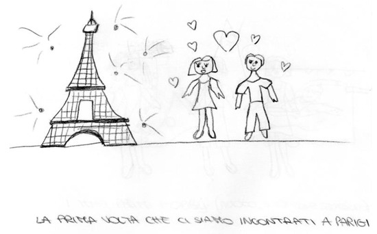Drawing, referring to adolescence, entitled “The first time we met in Paris”.