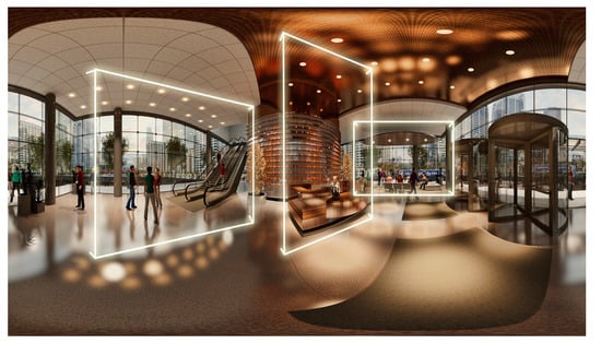 Example of a 360° interactive virtual tour scene for the most common holographic viewers such as Samsung Vr and VR ONE Plus. Image by Ivr Nation.