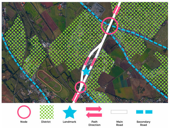 According to the legend, inspired by the one developed by Lynch, one can observe how the showroom (landmark) is located at the center of the bifurcation of the Grande Raccordo Anulare, between two nodes (Figure 2).