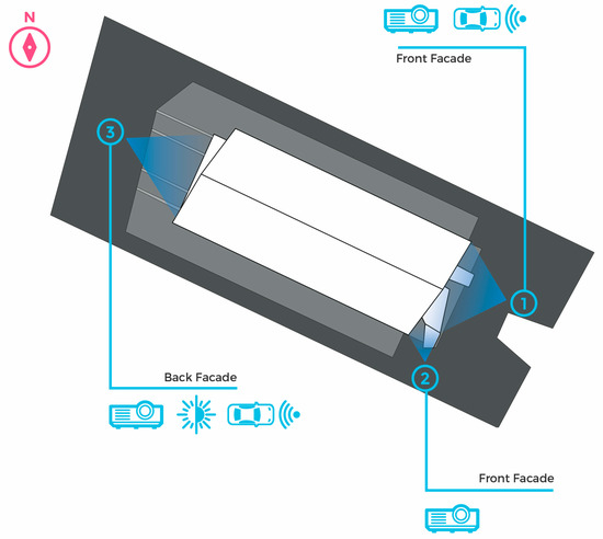 The content of “dynamic urban projection mapping” (Figure 11) can be of a diverse nature, ranging from the story of the evolution of the industrial/crafts area, to the marketing of the showroom products or the promotion of the company’s history and, therefore, of its brand.