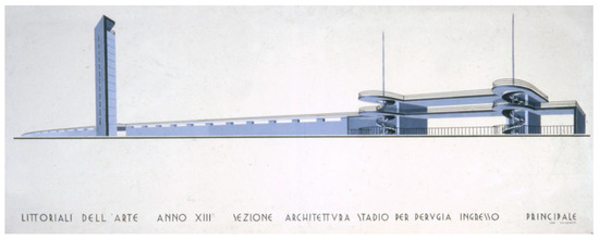 - See Rodi Palazzetti, Stadio per Perugia, 1935, perspective, India ink and watercolour, 72 × 180 cm (Perugia, Archive of the “Pietro Vannucci” Academy of Fine Arts, School of Architecture educational Fonds, inv. 1084) [31].