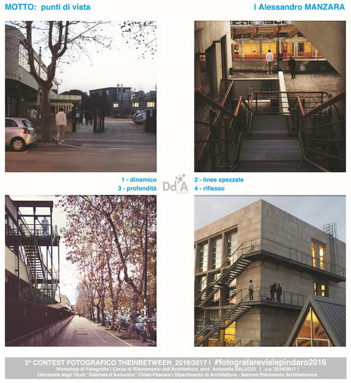 Pescara University District. #theinbetween, Photographic survey project. Available online: http://www.allievivialepindaro.wordpress.com; a mobile-photography contest for Instagram @allievivialepindaro, #fotografarevialeindaro2016.