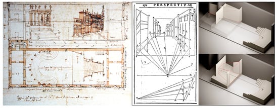 - Baglioni, L.; Salvatore, M. Projective principles at the basis of relief perspective in scenography of Guidobaldo del Monte. In Territories and Frontiers of Representation, Proceedings of the 39° Convegno Internazionale dei Docenti Delle Discipline Della Rappresentazione; Di Luggo, A., Giordano, P., Florio, R., Papa, L.M., Rossi, A., Zerlenga, O., Barba, S., Campi, M., Cirafici, A., Eds.; Di Luggo, A., Giordano, P., Florio, R., Papa, L.M., Rossi, A., Zerlenga, O., Barba, S., Campi, M., Cirafici, A., Eds.; Gangemi Editore International: Rome, Italy, 2017; pp. 267–276. ISBN 978-88-492-3507-4. [Google Scholar]