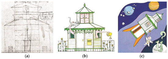 In “La poétique de l’espace”—often referred to by authors who deal with spatial representation in children [5,9]—Bachelard highlights the links between the affective dimension and the evocative capacity of familiar spaces, when he states that ‘tout espace vraiment habité porte l’essence de la notion de maison’ [10] (p. 24). The house is also, for obvious reasons, the architectural theme most present in children’s literature in general and the most direct vehicle for linking the spatial and living experience (as well as the existential experience) of the young reader with the representations offered by literature.