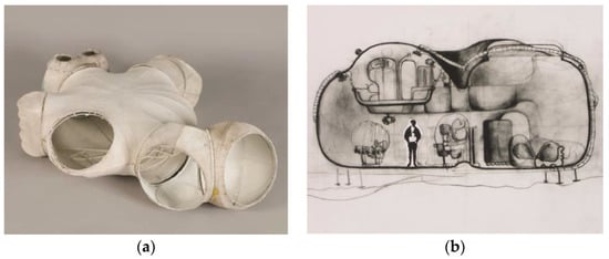 (a) Antti Lovag, Without title, Maquette, 1966, Frac Center Collection.; (b) David Greene (Archigram), Living Pod, 1967.