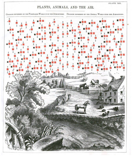 Eduard L. Youman, Chemical Atlas, New York, 1856, Plate XII, Changes induced by vegetal and animal kingdoms to the atmosphere.