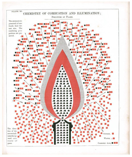 Eduard L. Youman, Chemical Atlas, New York, 1856, Plate XI, Chemistry of combustion and illumination: structure of flame.