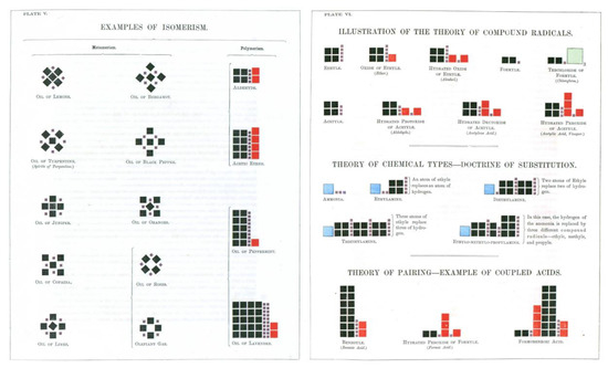 Incredibly effective also the images in Plates V and VI (Figure 5), not only in terms of the educational efficacy of the simplification of chemical compounds between elements, but also for the extraordinary modernity of the formal expression and the quality of organization of visual elements which definitely recalls the figurative speculation of the Gestalt and anticipates the processes of schematization of the properties of forms in the investigations on the plastic organization of elements in the visual experience. To it the laws on perceptual organization defined by Georgy Kepes in his most famous work Language of vision [8] can be traced back.
