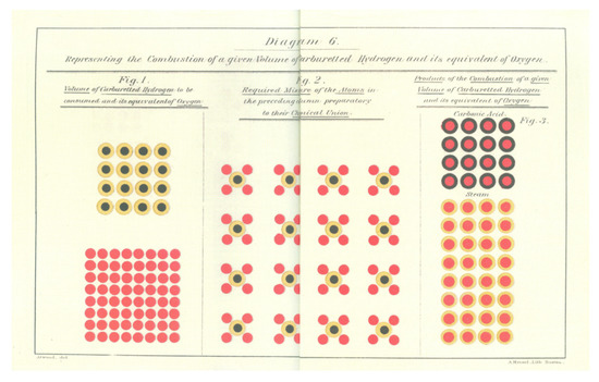 Equally effective in terms of simplification and visual synthesis is the work by Ezekiel Webster Dimond, The Chemistry of Combustion [9], published in 1867 in Worcester. Here, the complex chemical processes of combustion are explained with the plain and accurate language of images and elementary symbols, above all with the introduction of colours: red for acids, yellow for water, blue for nitrogen and black for carbon (Figure 6 and Figure 7).
