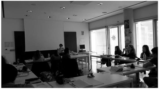 Zeigen, attention: Heidegger, in the preface to Richardson’s work on phenomenological thinking, notes “through the immediate experience of the phenomenological method, speaking with Husserl, the concept of phenomenology was elaborated, as it is explained in the introduction of Being and Time. In it, “retrorelation” (Ruckbeziehung) plays a fundamental role, with the corresponding fundamental words (Grundworte) of Greek thought: logos (make manifest) and phainesthai (show)” [32]. In presenting more than representing the images, the “show” and “show oneself”, Zeigen sich-Zeigen, is directly connected with learning and education [28]. Also in Italian show and demonstrate are part of the tradition oriented toward vision and evidence of scholastic explaining. The verb zeigen can be translated with indicate, in the sense of mark, therefore to teach. In the image relative to the EMI experience (Figure 4) in the dialogue even more than the words, the looks, the expressions of faces, demonstrate listening, attention, which seems to be reflected in the behavior of those present.
