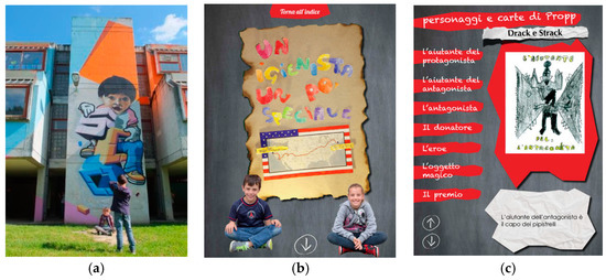 Shrek, the children analyzed structure and characters, getting to know the Propp Cards and writing in pairs an original fairy tale. Three sequences have been extracted from the text, storyboards and scenographies were made. For each stage, the children have made a session of shots, with the stop motion technique (150–300 shots per sequence). Couples were constantly supported by the expert. After the photographic sessions, children produced the audio narrative. In the garden they made photographs for the video covers. The activity ended with photo and audio editing phase, with the introduction of textual parts and soundtracks by the expert, in order to create an iPad app (