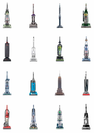 Besides, the example of arrangements of 16 similar shapes representing 15 vacuum cleaners and the Empire State Building (Figure 3) is a confusing experience. Given the formal similarity of the silhouette and the absence of scale, we can see all of the objects as vacuum cleaners or as high rises.