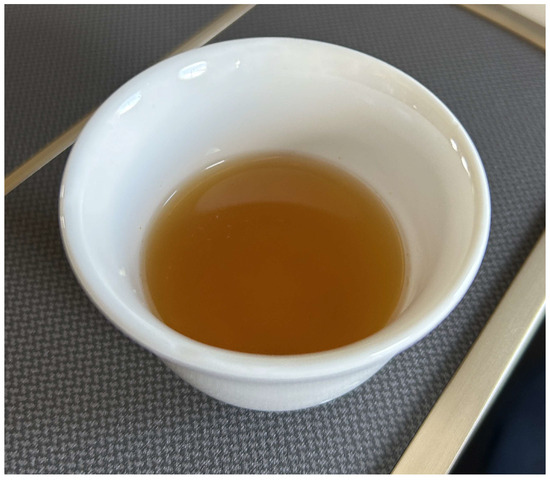 Photograph of a typical Arabic coffee prepared from very light-roasted beans, more resembling tea than coffee (own photo by the authors).