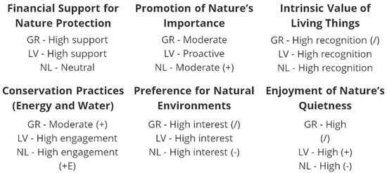 There are differences in utilization and preservation attitudes among the three countries (Figure 3).