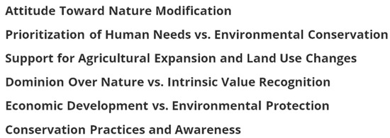 Comprehensive understanding of students’ environmental attitudes reveals distinct clusters of attitudes rather than a simple continuum between preservation and utilization. It is hypothesized that students who demonstrate a greater understanding of the implications of climate change and environmental degradation are more likely to show biocentric attitudes, prioritizing the preservation of ecosystems and natural resources over anthropocentric concerns.