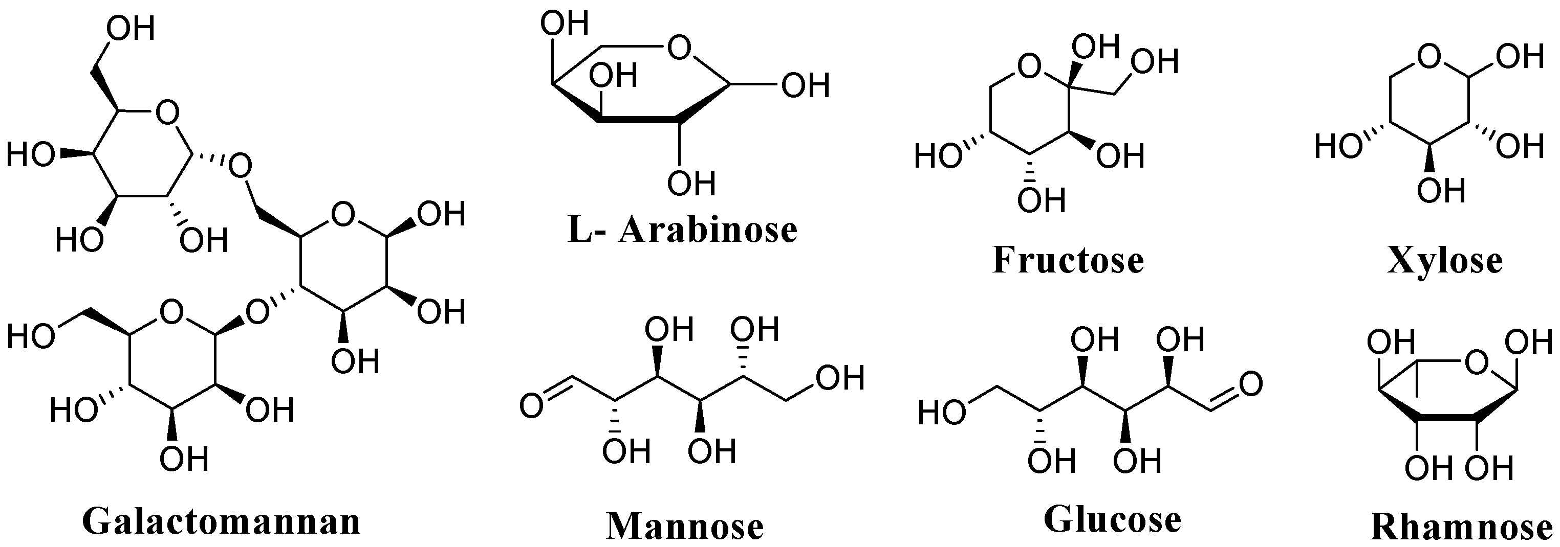 - Gorakhnath, M.G.S.; Hingane, L.D. Characterization of fenugreek seeds mucilage and its evaluation as a suspending agent. Int. J. Res. Appl. Sci. Eng. Technol. 2022, 10, 4382–4386. [Google Scholar] [CrossRef]