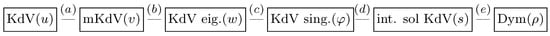 - Treves, F. Noncommutative KdV hierarchy. Rev. Math. Phys. 2007, 19, 677. [Google Scholar] [CrossRef]