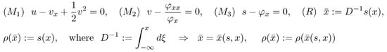 Then, the Burgers hierarchy reads , according to the detailed study in [], where, in addition, a mirror Burgers hierarchy is constructed whose base member is
