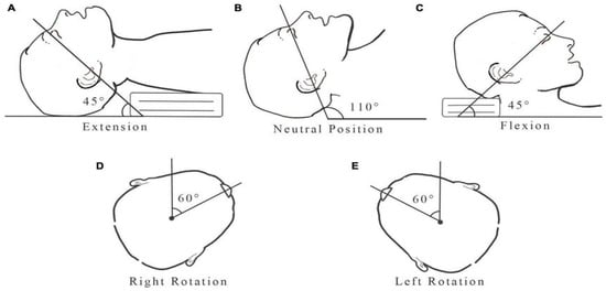 1. Postural Analysis: Initial assessments were conducted to define the parameters of the cervical posture typically observed during dental treatments. The neutral cervical position was defined based on the ergonomic literature and measurements of the cervical range of motion (ROM) in flexion, extension, and lateral rotation (Figure 1).