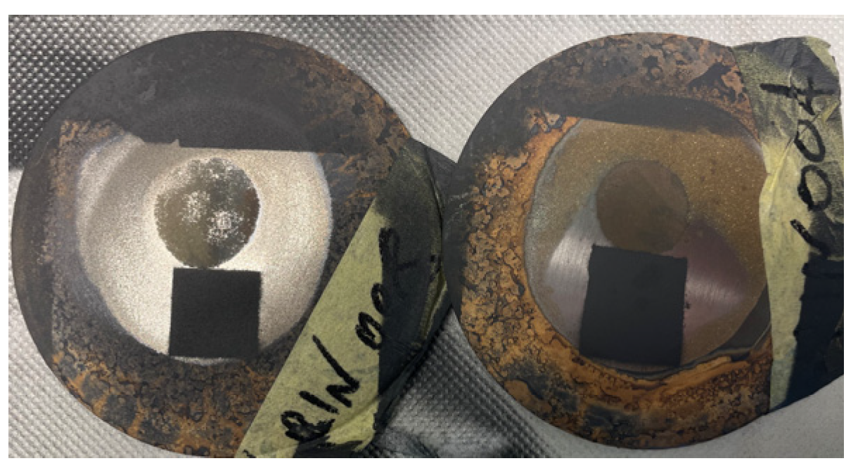 Figure 1). In addition, the surface condition changed markedly, presenting localized alterations that resulted in non-uniform emissivity across the surface, which is particularly critical for thermographic analysis.