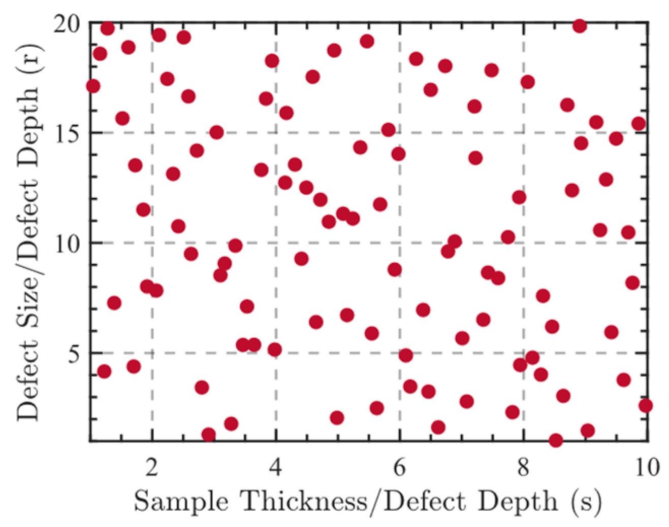 - Wei, Y.; Zhang, S.; Luo, Y.; Ding, L.; Zhang, D. Accurate depth determination of defects in composite materials using pulsed thermography. Compos. Struct. 2021, 267, 113846. [Google Scholar] [CrossRef]