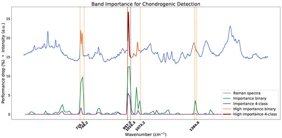 - Chondrogenic: Performance drop threshold: 3%. Primary peak: 997–1016 cm. For 4-class: additional peaks at 725–748 cm, 997–1072 cm, and 1384–1394 cm.