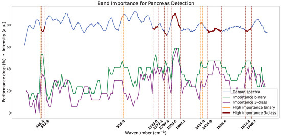 - PDA: Performance drop threshold: 30% (3-class) and 45% (binary)s. Key features: 1250–1302 cm peak and 958–973 cm valley.