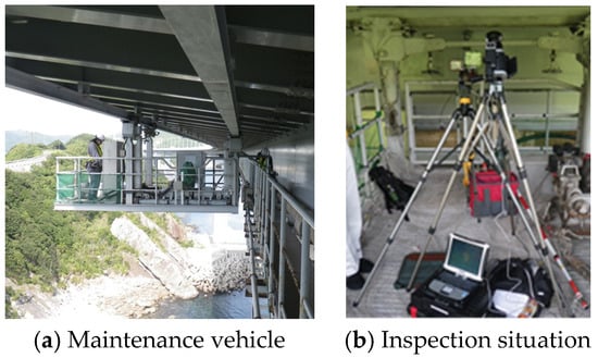 The total length of orthotropic steel deck lanes owned by the Honshu-Shikoku Bridge Expressway Co., Ltd. is about 100 km, which is enormously long, and thus it is necessary to develop inspection equipment and other means to efficiently perform inspections. The inspection and maintenance vehicles (hereafter referred to as ‘maintenance vehicles’) are permanently installed on each long-span bridge. However, their structure, operating mechanism, and positioning relationship to the weld beads significantly depend on the bridges, and customized temperature gap method devices for each specific bridge have been developed.