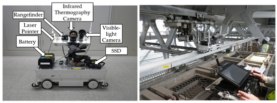- Yoshiaki, M.; Atsuhiro, O.; Tokihide, O.; Yui, I.; Takahide, S. Development of automatic crack detection device for bead-penetrating crack in orthotropic steel deck by temperature gap method using infrared thermography. J. Struct. Eng. 2018, 64, 573–582. [Google Scholar] [CrossRef]