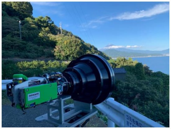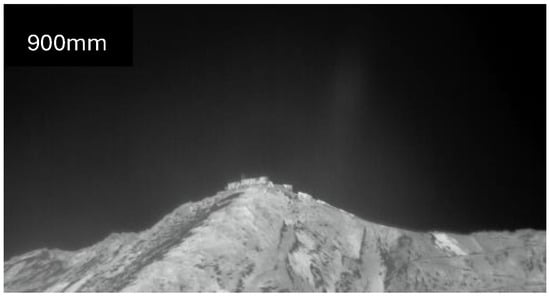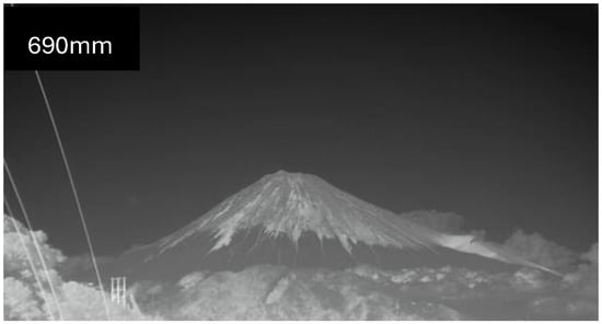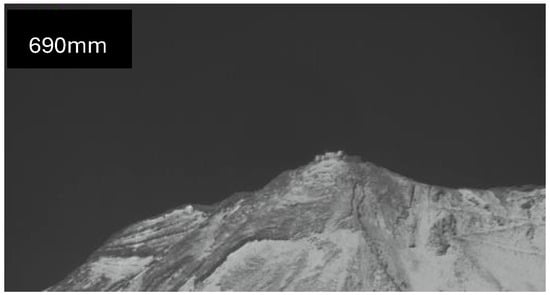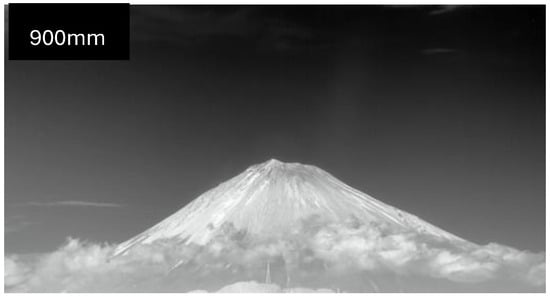 These are the images taken from about 36 km away from the summit of Mt. Fuji to compare the maximum wide angle and maximum narrow angle of 900 mm and 690 mm. The images were taken on different days, but at the same location (Figure 5, Figure 6, Figure 7 and Figure 8).