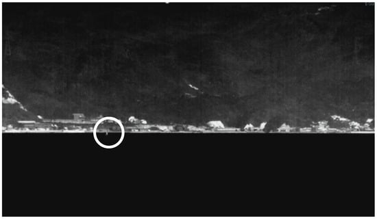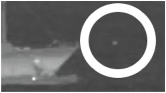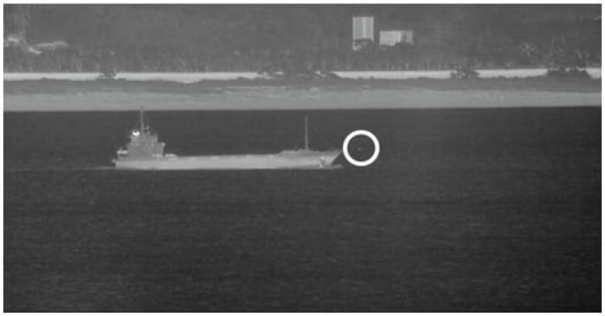 Figure 2 shows an image of a ship and a bird traveling 20 km ahead taken by an infrared camera with a focal length of 900 mm. Figure 3 shows an enlarged image of the bird in Figure 2.