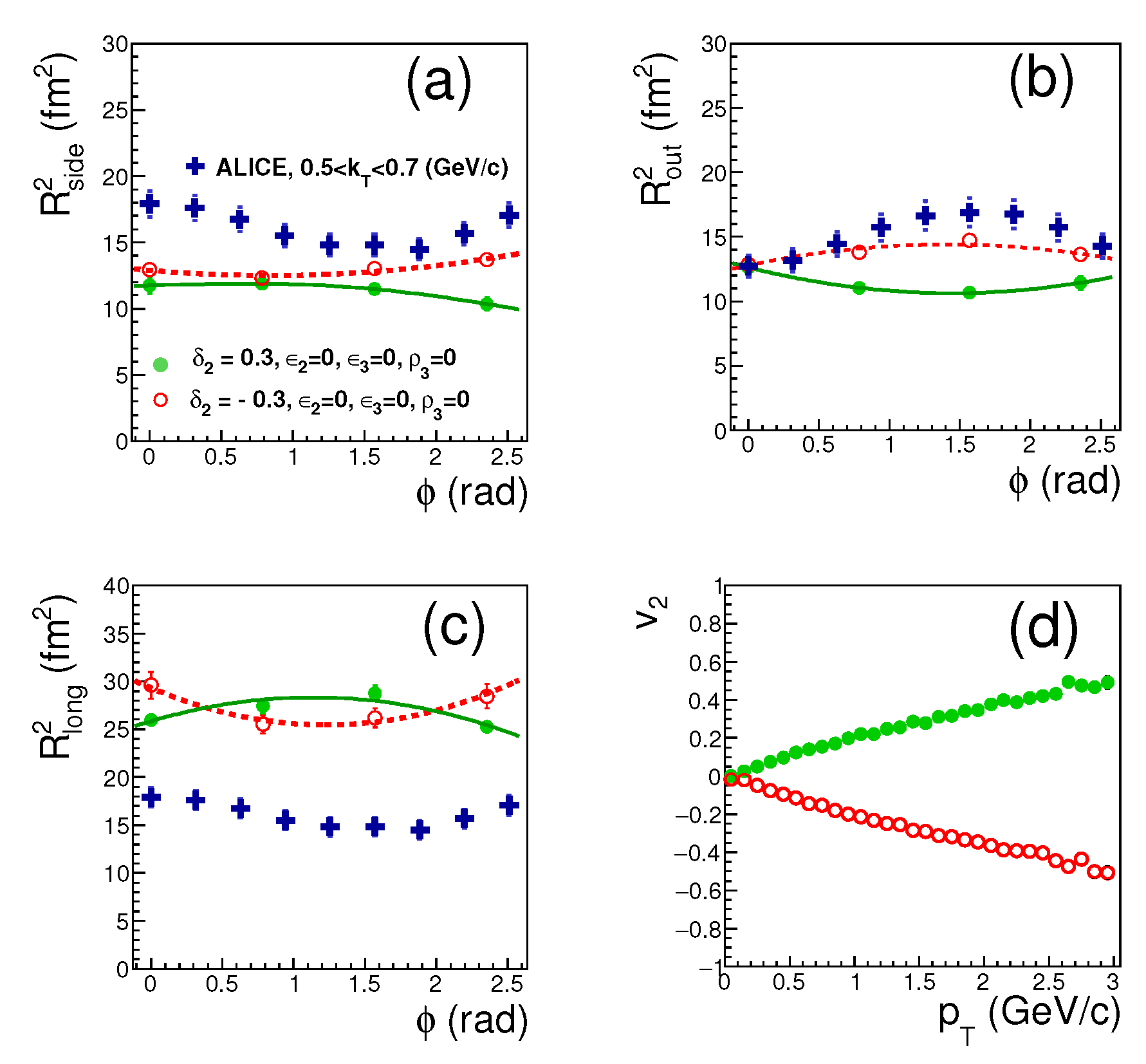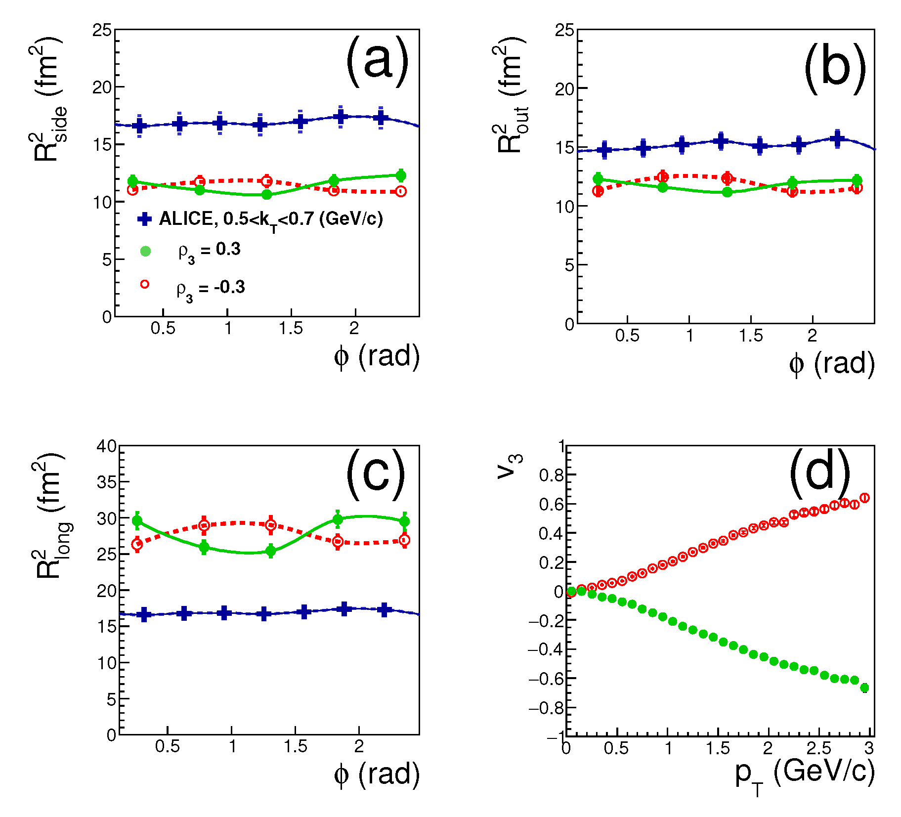 - Acharya, S.; et al. [ALICE Collaboration] Azimuthally-differential pion femtoscopy relative to the third harmonic event plane in Pb-Pb collisions at sNN=2.76 TeV. Phys. Lett. B 2018, 785, 320–331. [Google Scholar] [CrossRef]