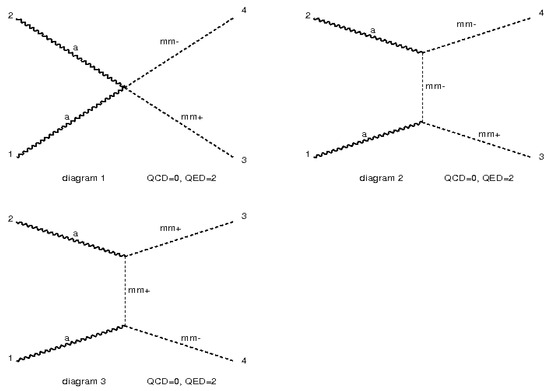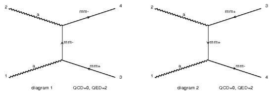 The Feynman Diagrams produced by MadGraph for spin ½ magnetic monopoles. Here, “mm+” suggests monopole, “mm−” shows the anti-monopole and “a” describes the photon.
