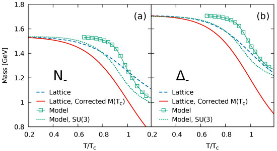 17]). Hence, our results do not rule out the manifestation of parity doubling. To correctly account for the influence of the chiral symmetry restoration over the thermodynamic quantities, a consistent framework beyond the mass shifts is required.