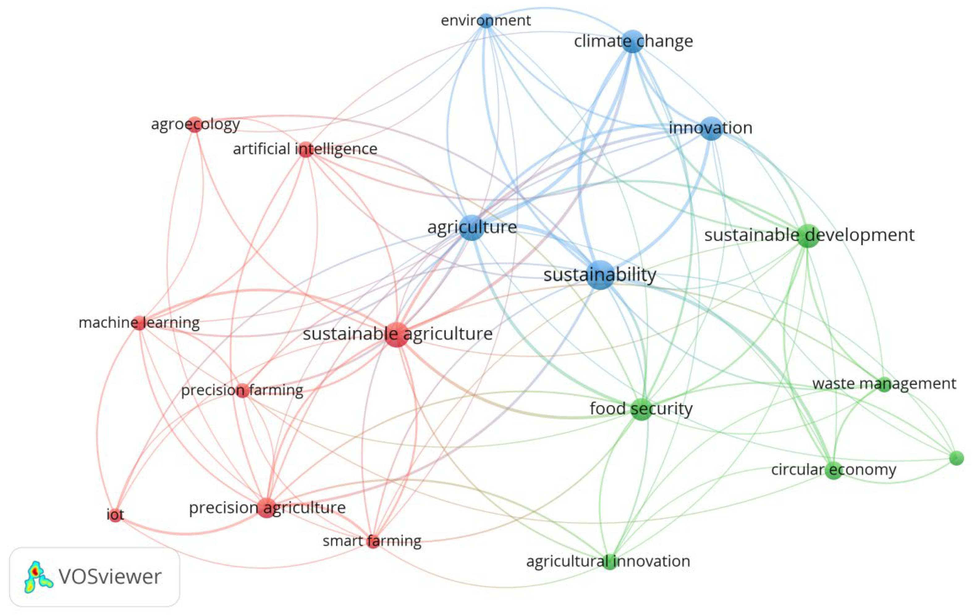 Artificial intelligence, machine learning, and agricultural innovation confirm that sustainable agriculture has started incorporating digital tools to promote smarter crops and management systems. Emerging terms such as precision agriculture, agroecology, and circular economy also demonstrate a direction of research towards more technological and environmentally innovative approaches.