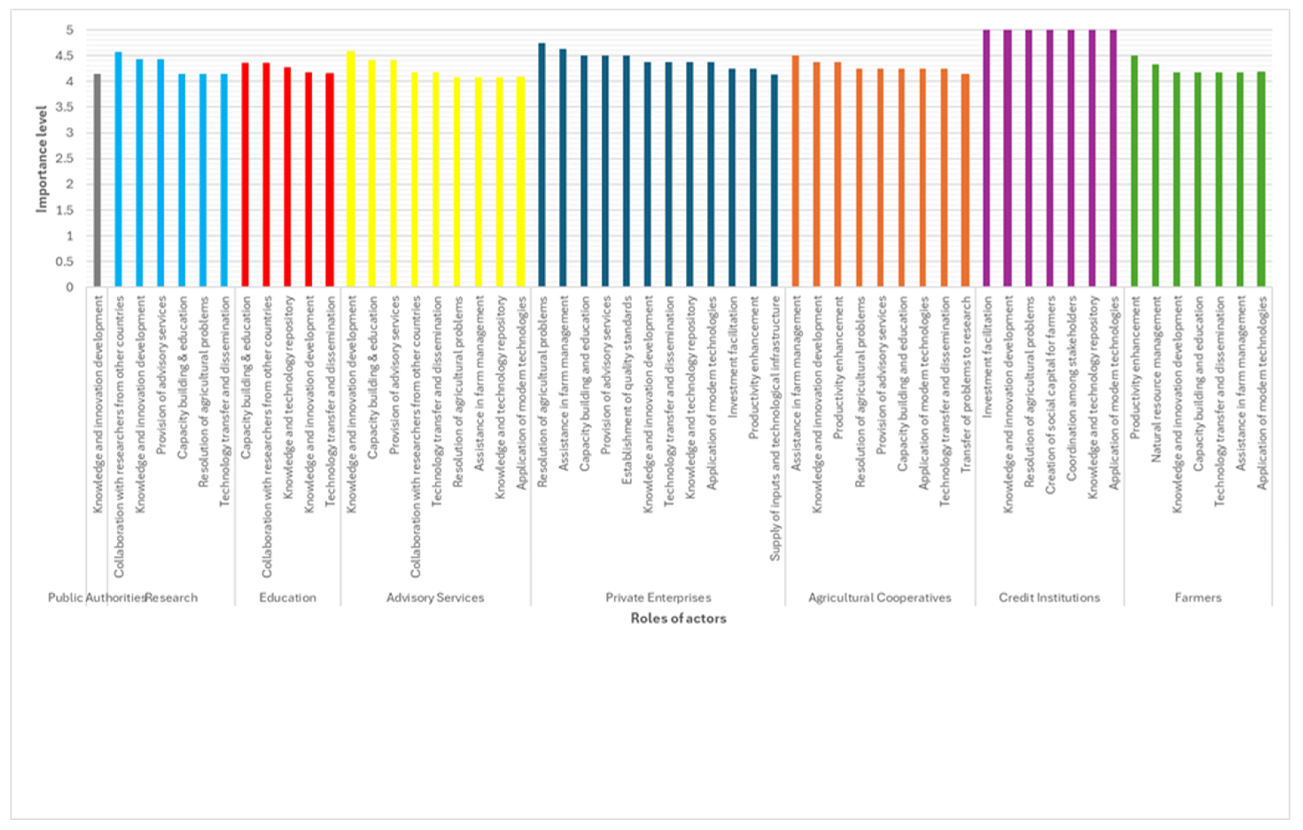 | Requirements * | Public Authorities | Research | Education | Advisory | Private Sector | Cooperatives | Farmers | Credit | Overall Average |